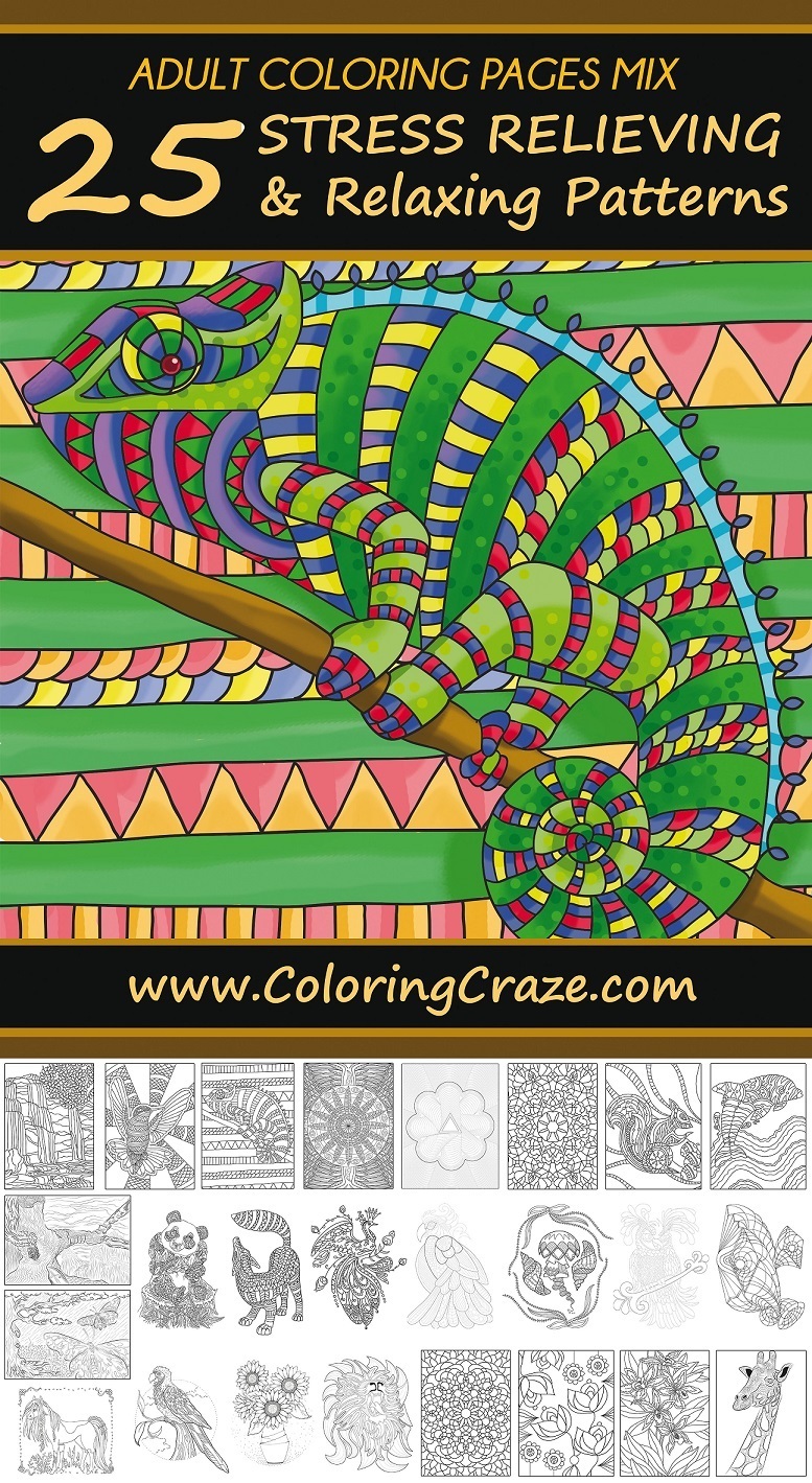 Adult Coloring Books MIX (25 Illustrations)